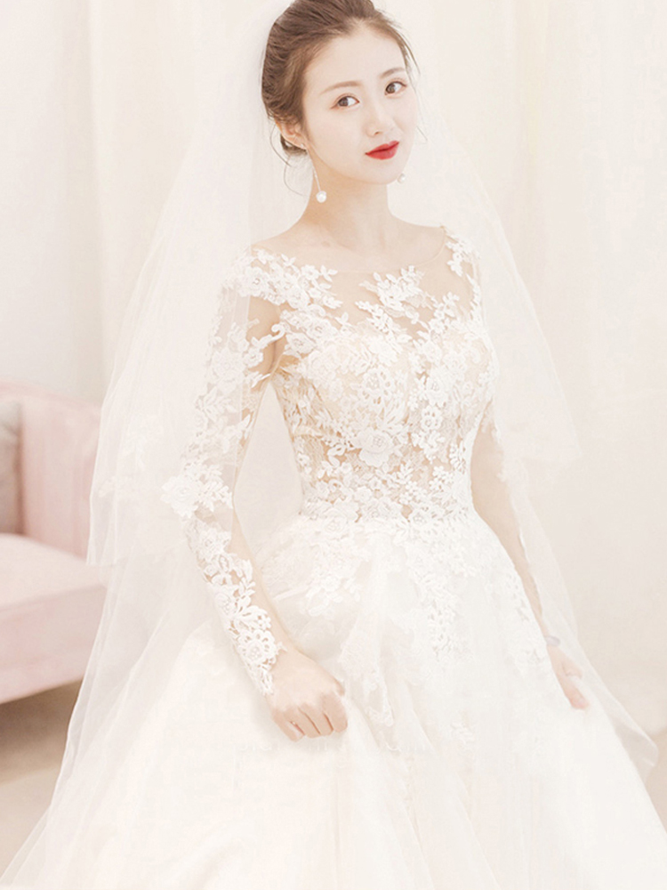Wedding dress 2022 new bride wedding Korean version one-shoulder long-sleeved thin Qidi Hepburn retro light wedding dress