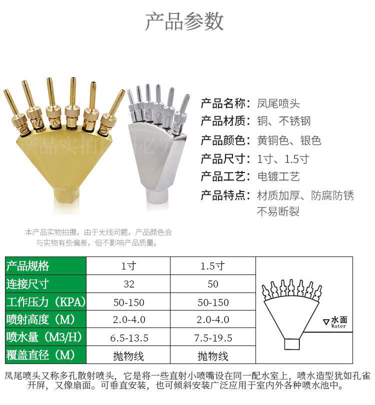 All copper 304 stainless steel adjustable universal phoenix tail nozzle peacock open screen waterscape landscape fountain nozzle 1 inch 2 inches