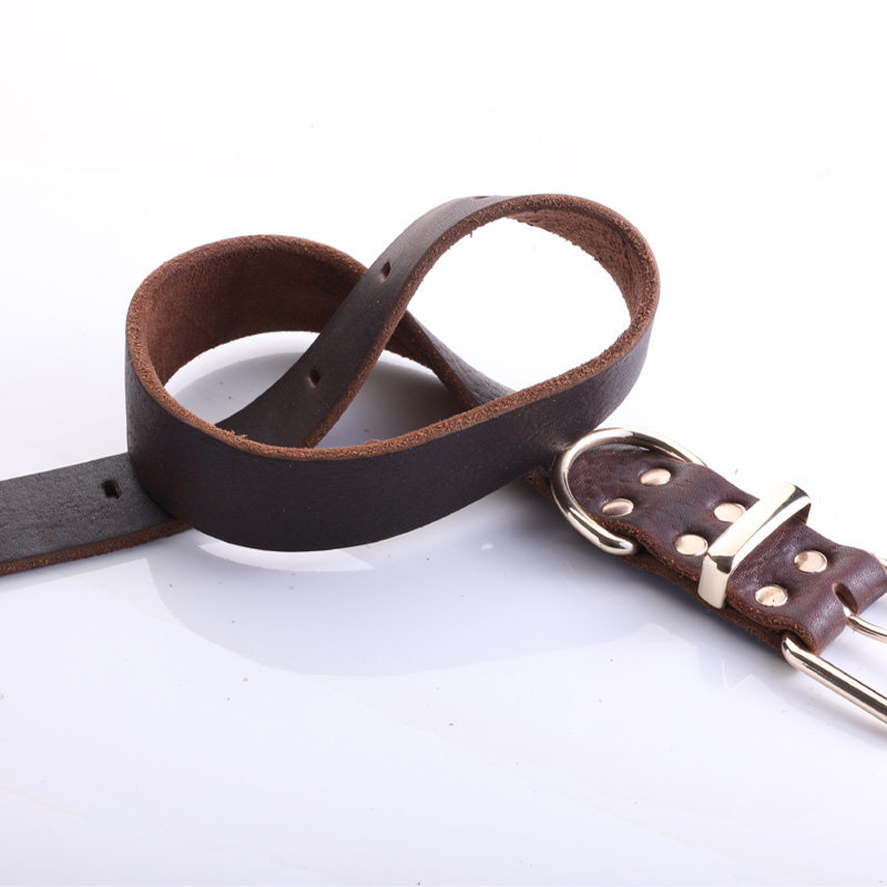 Small, medium and large dog collar dog collar dog collar first layer cowhide collar dog collar 5 sizes
