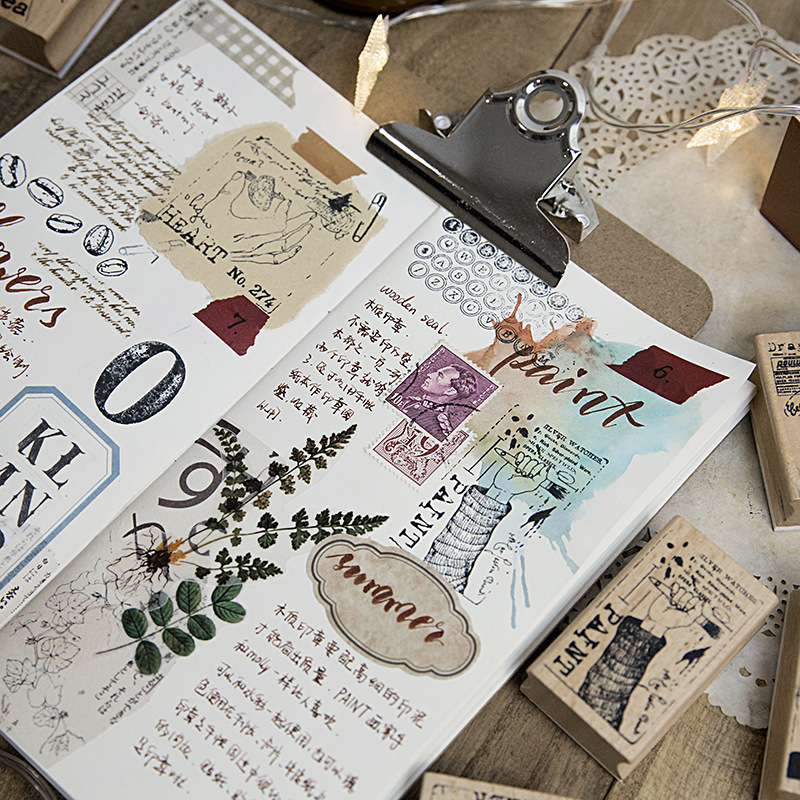 WEEK BAR Hand Account Wooden Seal Aesthetic Sports Department Hand Account Material Tool Hand Account diy Decoration