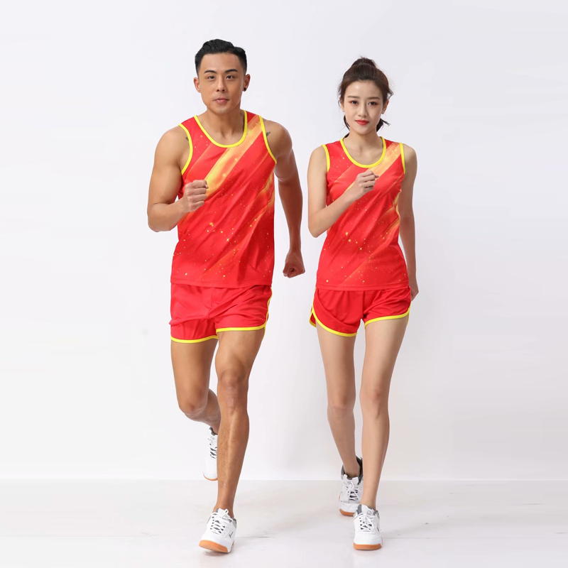 Tracksuit Suits for Men and Women Professional Competition Marathon Training Suits National Team Vest Shorts Running Suit Print