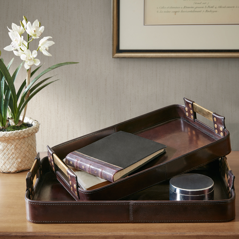 Large dark brown leather tray-113929 Small dark brown leather tray-113930