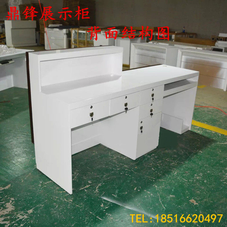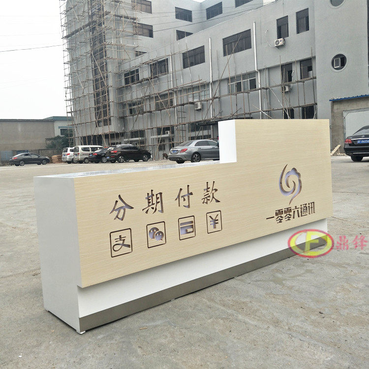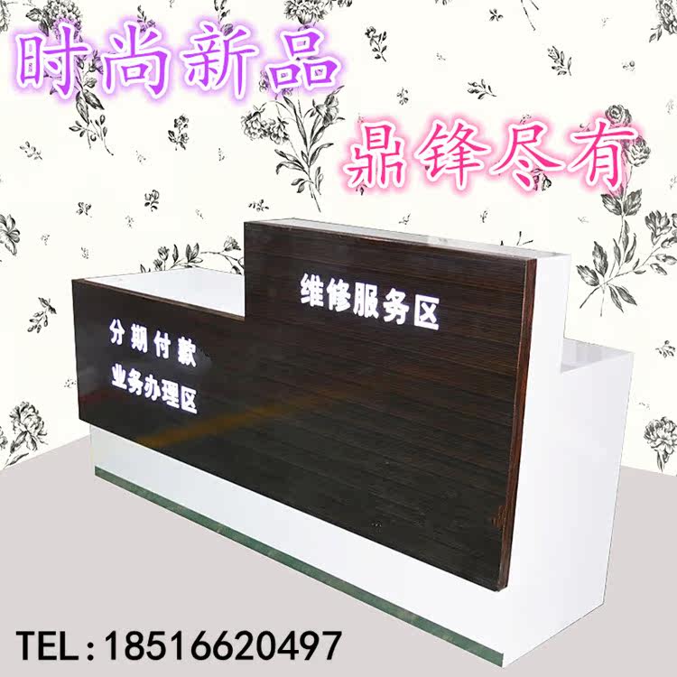 New wood grain paint reception front desk mobile phone shop cash register counter Mobile phone repair desk business reception desk luminous LOGO