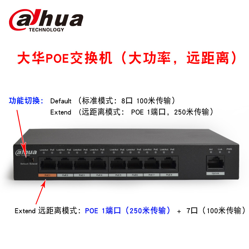 DH-S1500C-8ET1ET-DPWR Dahua 8-port POE switch high-power long-distance network power supply