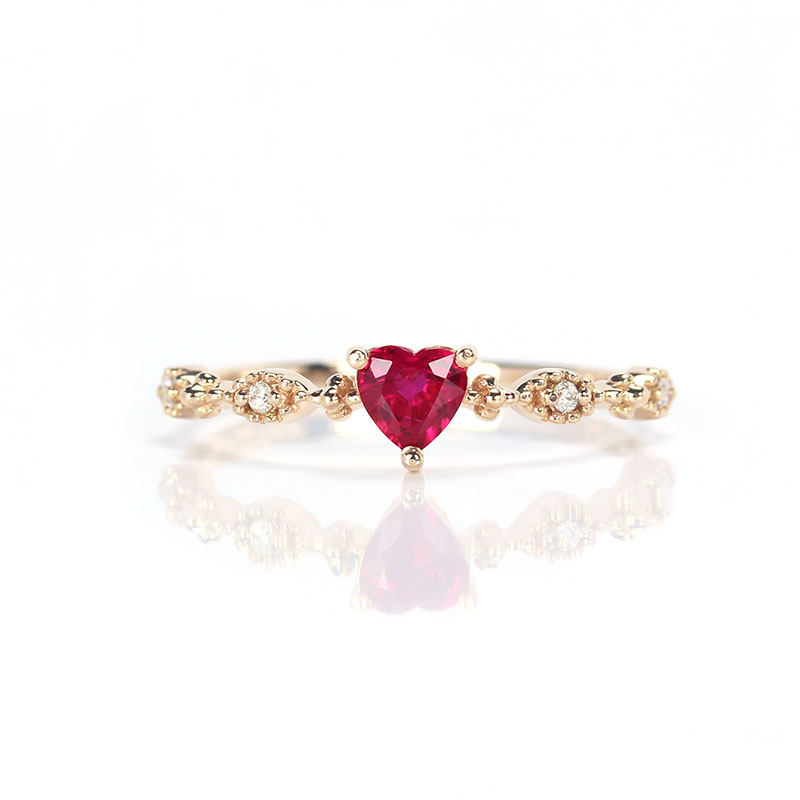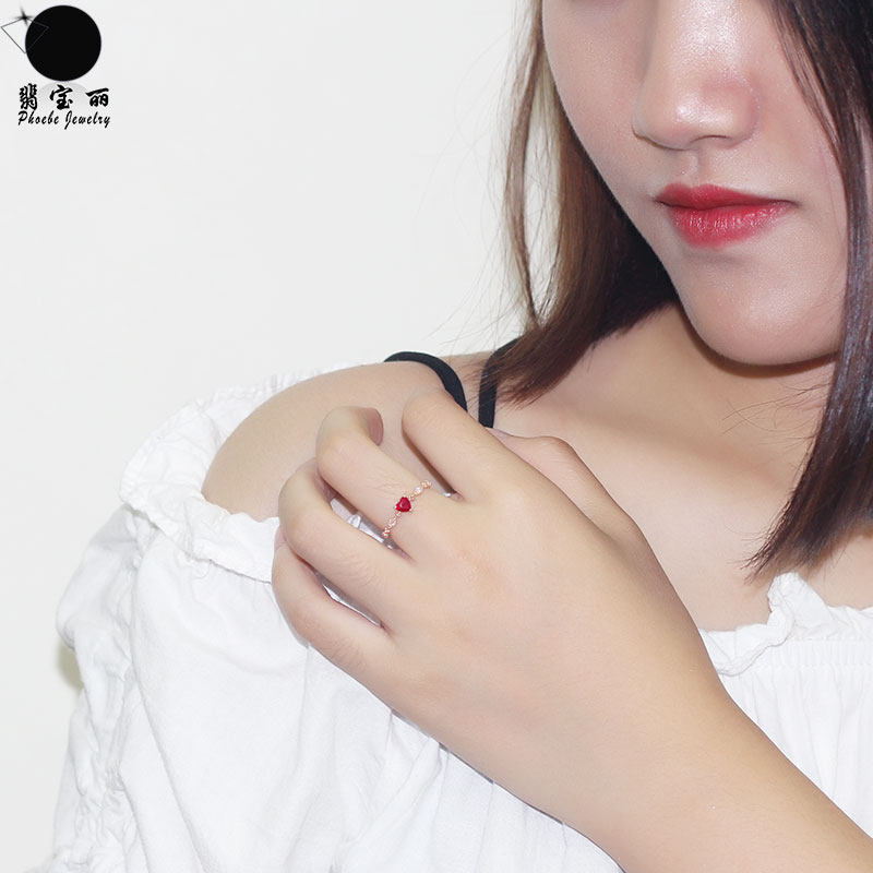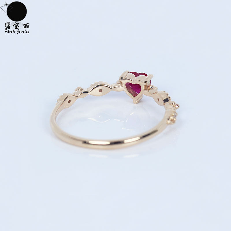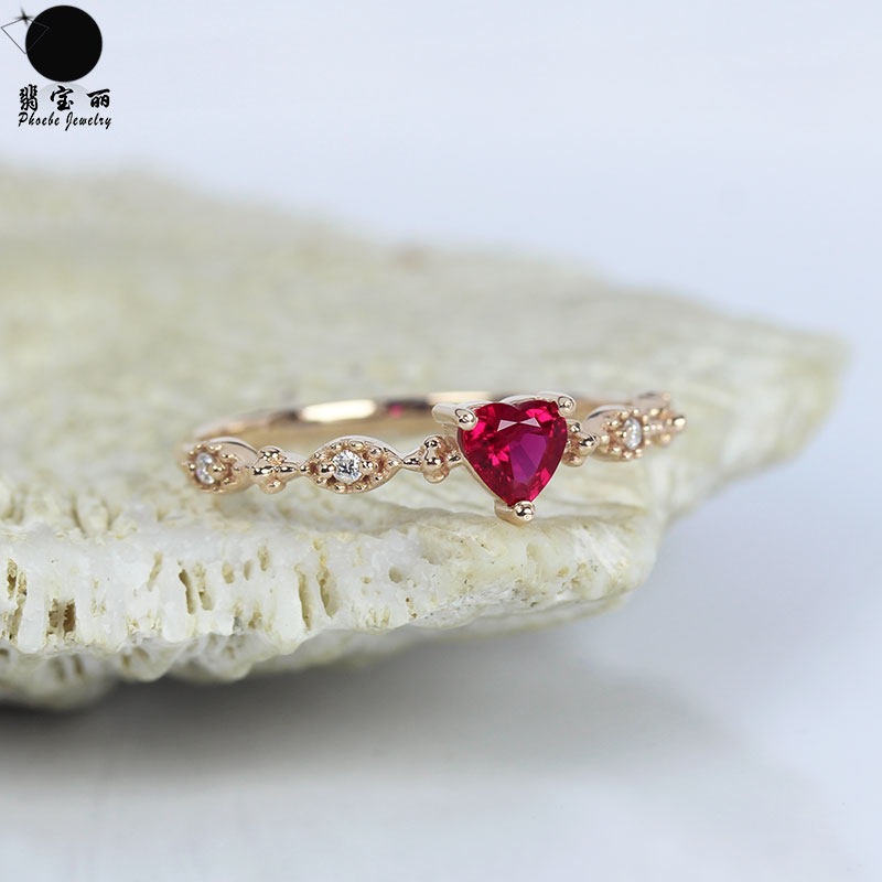 18K rose gold bright heart-shaped Burmese natural pigeon blood ruby retro ring diamond Japanese and Korean small fresh female