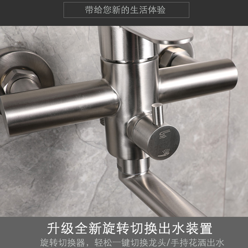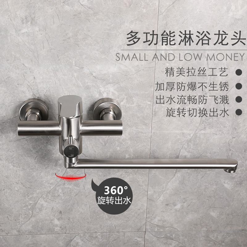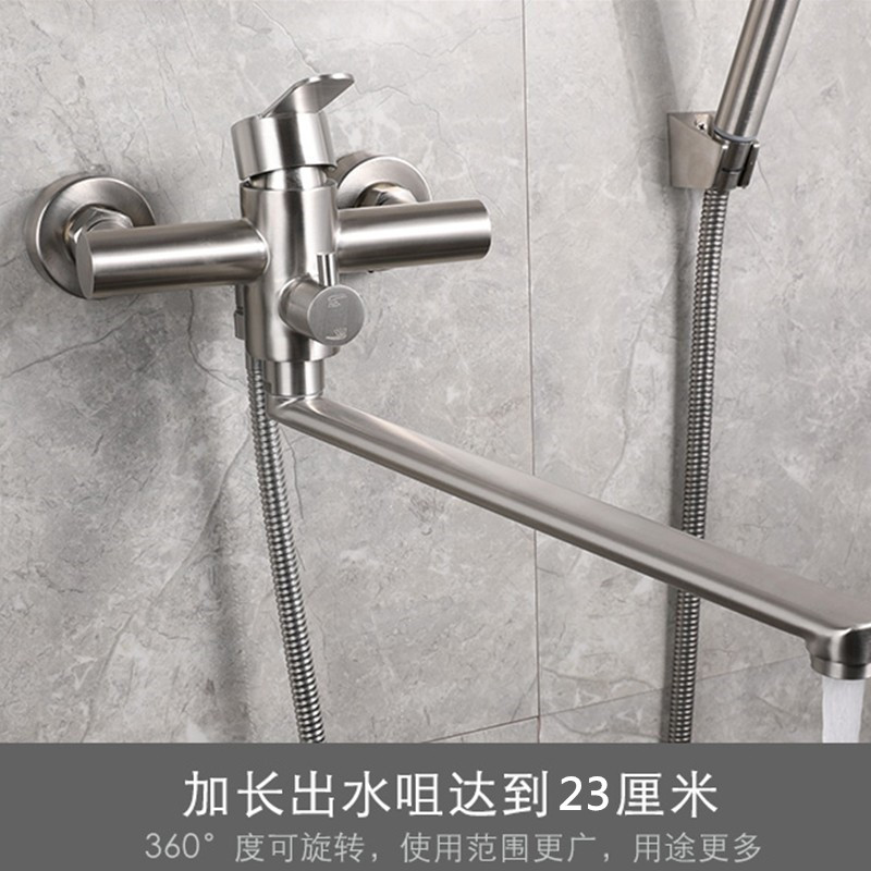 Lengthened 304 stainless steel shower tap bathroom bathtub concealed triple hot and cold shower tap water valve suit-Taobao