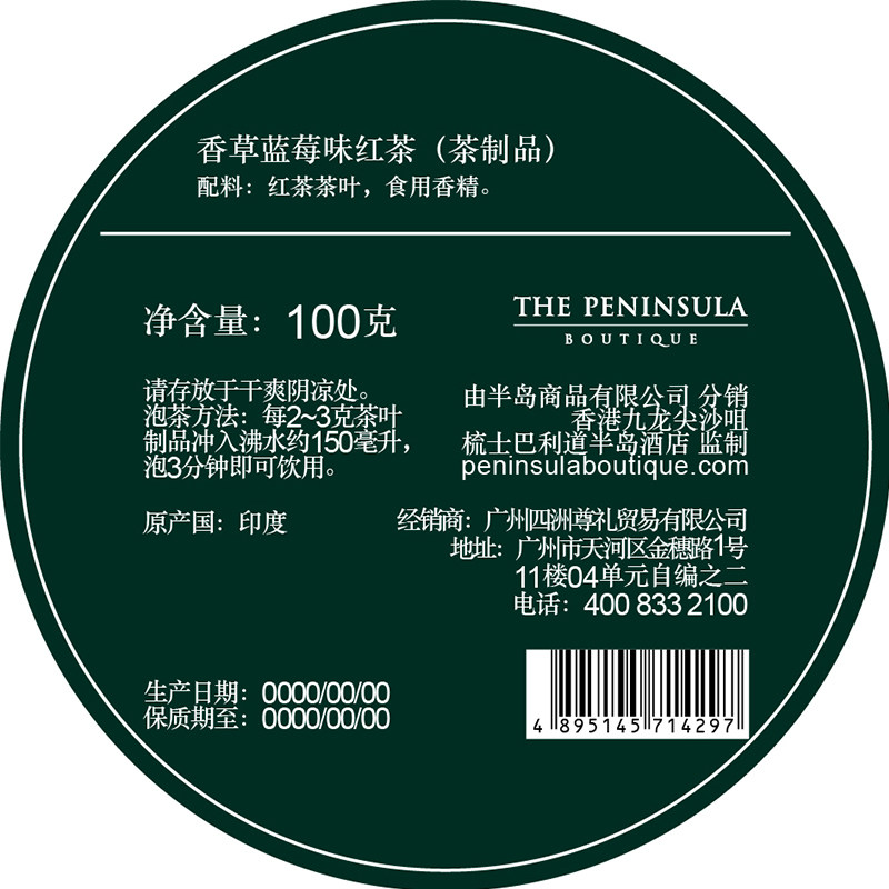 The Peninsula Boutique, Hong Kong, China - Vanilla Blueberry Black Tea Tea Assam Tea India Father's Day