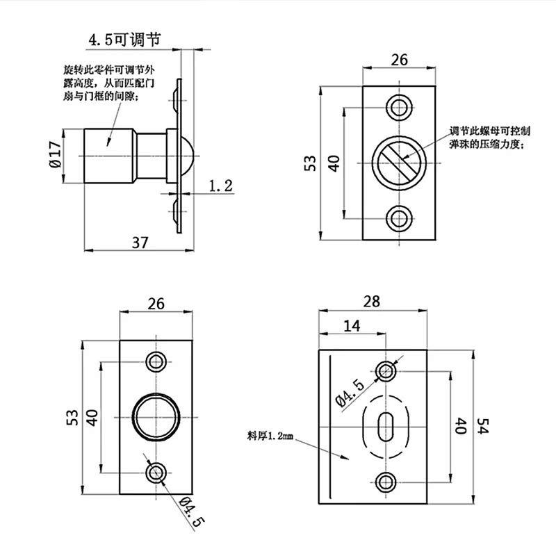 Touch Bead Door Touch Invisible Door KTV Indoor Make-up Room Spring Bumped Bead Cabinet Door Snap Top Pearl Positioning Bead
