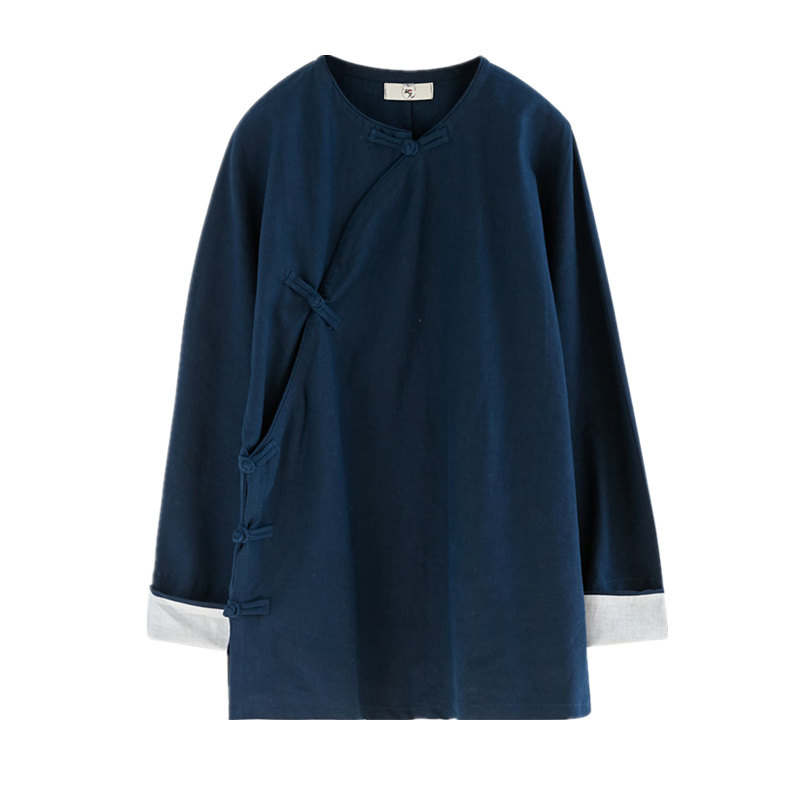 China Feng Chun Summer round-collar flat-fitted coat retro-disc Chinese tea-suit male sleeve shirt