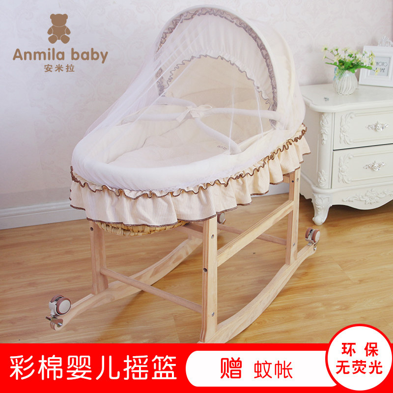 Baby Basket Baby Bed Outside Portable Car Sleeping Basket Newborn Lincoli Handscape Basket Solid Wood Cradle Bed