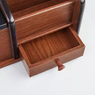 Retro wooden pen holder multifunctional desktop storage box tissue box remote control mobile phone business card box office gift