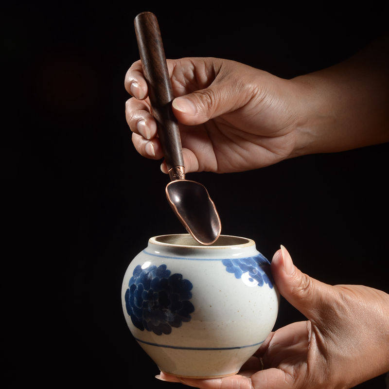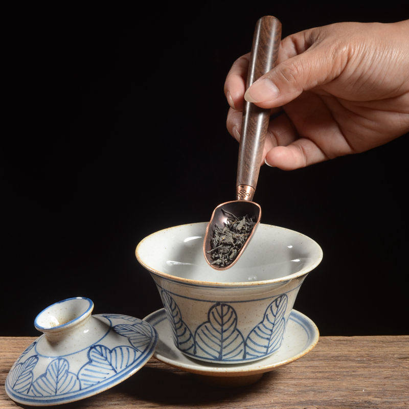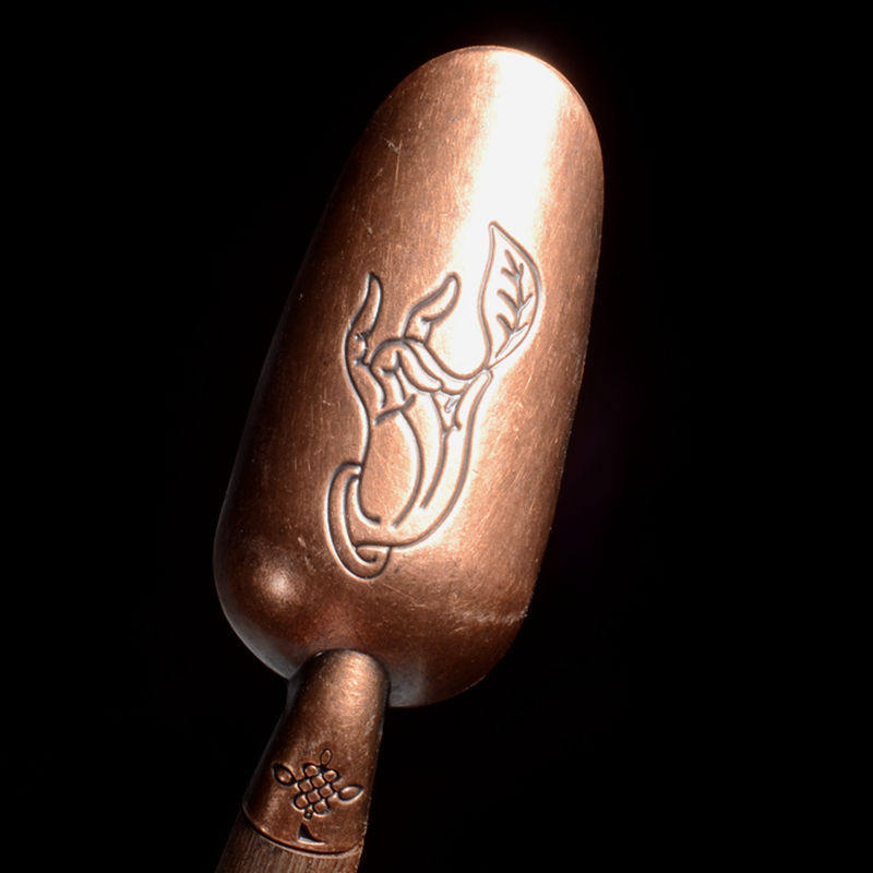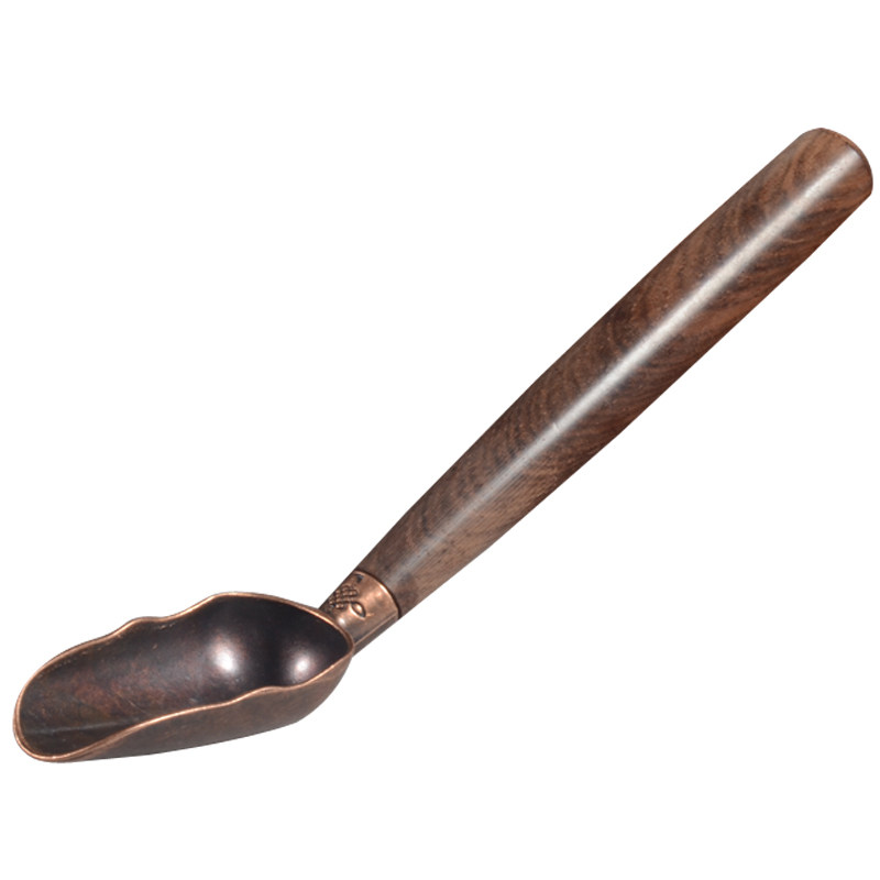 Solid wood handle antique bronze head Zen Buddha Hand Tea Spoon Utiliti tea Accessories Elbow Teaspoon Tea Shovel