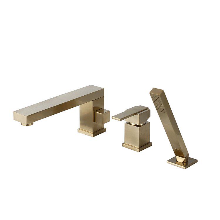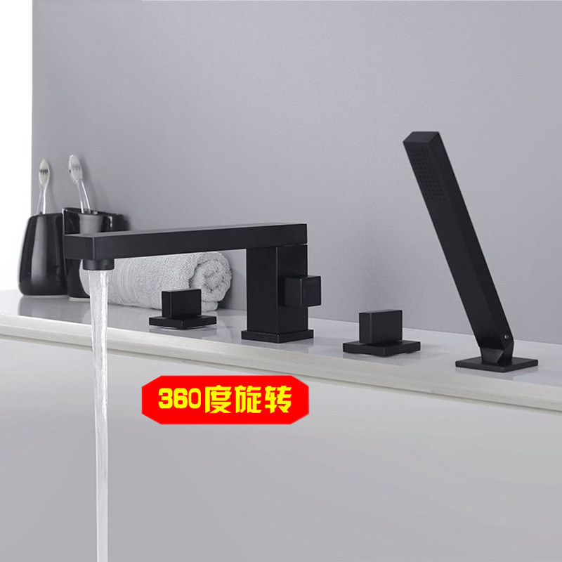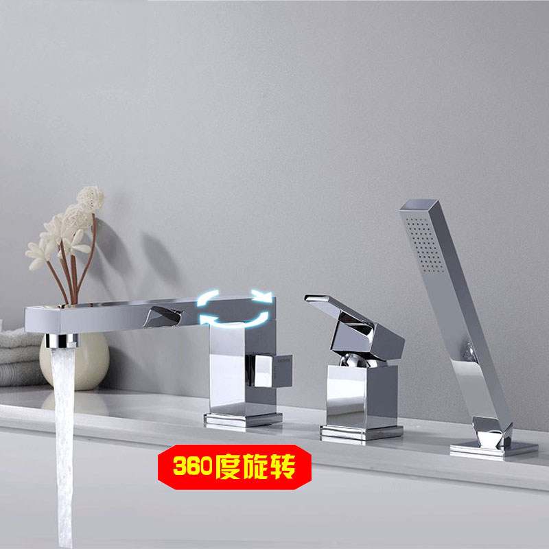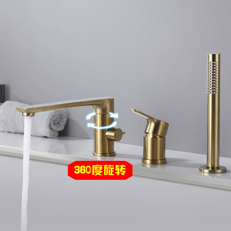 German high-end all-copper three-hole two-piece wire drawing gold bathtub tap cylinder side sitting type rotatable shower shower