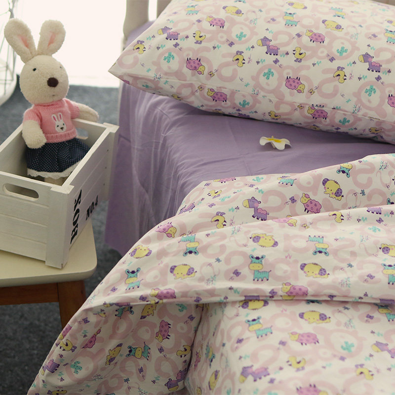 Cartoon farm animal pure cotton cloth custom-made girl children's dormitory kindergarten bed sheet quilt cover fitted sheet pillowcase
