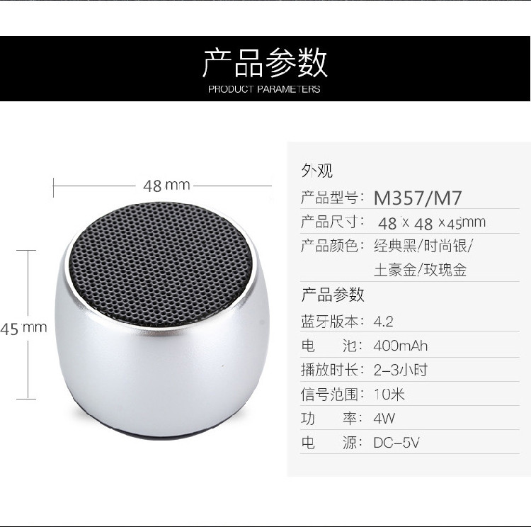 Mobile phone Bluetooth speaker mini-small outdoor large volume wireless sound small steel gun heavy bass gun
