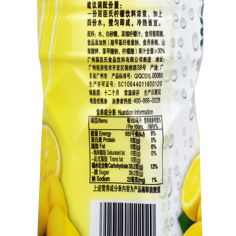 Cuchen's green lemon juice 750ml * 12 bottled yellow lemon concentrated berries with a strong pulp and fruity blend of wine