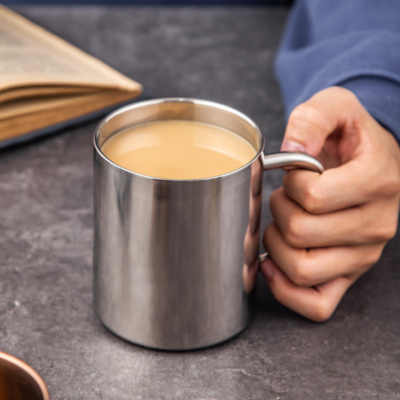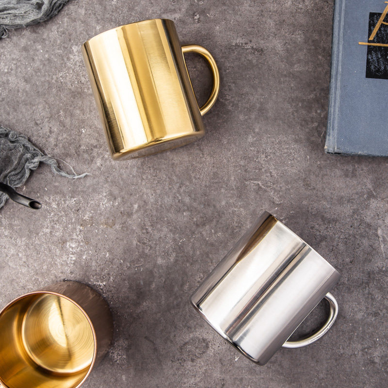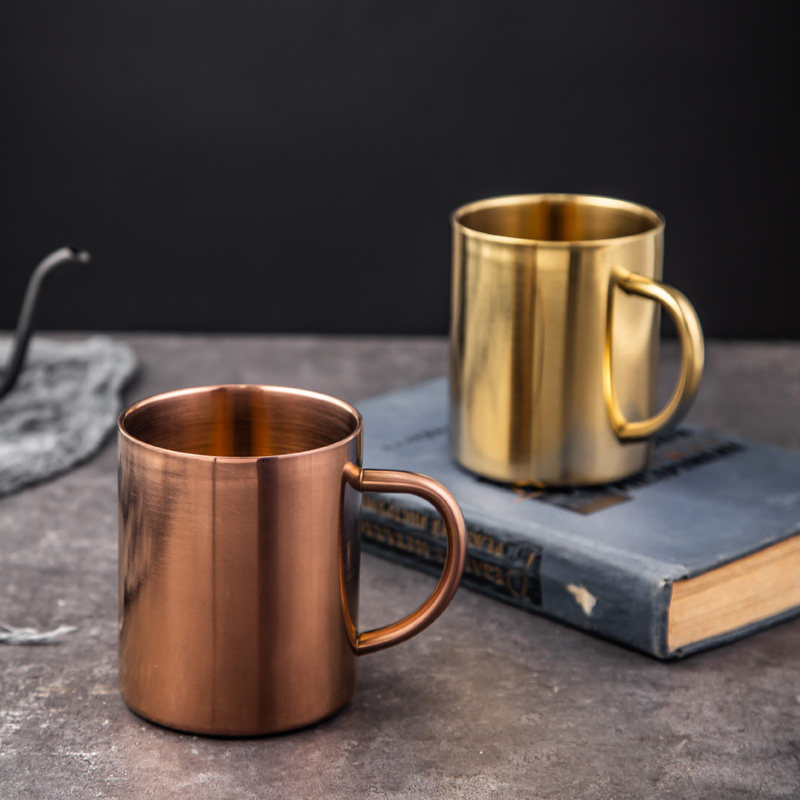 Nordic industrial style retro golden coffee cup water cup with handle cup 304 stainless steel double layer mug