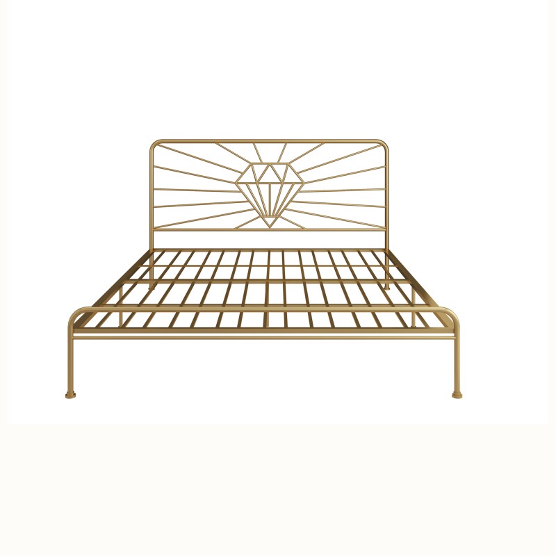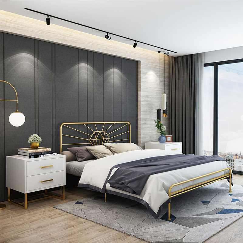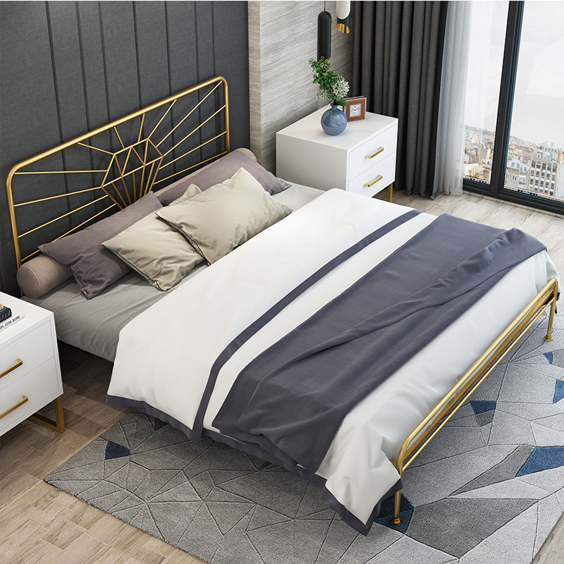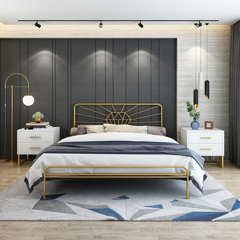 Nordic golden double bed ins simple wrought iron bed 1 5 meters 1 8 meters soft package back metal retro single bed