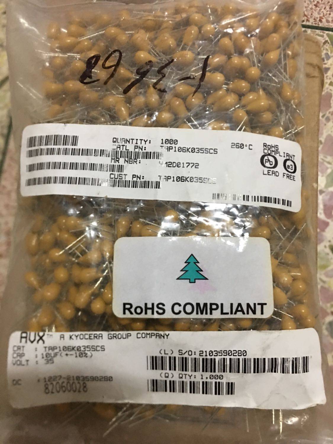 Imported original 10U TAP106K035SCS 35V10UF 10UF 35V AVX straight plug tantalum capacitor
