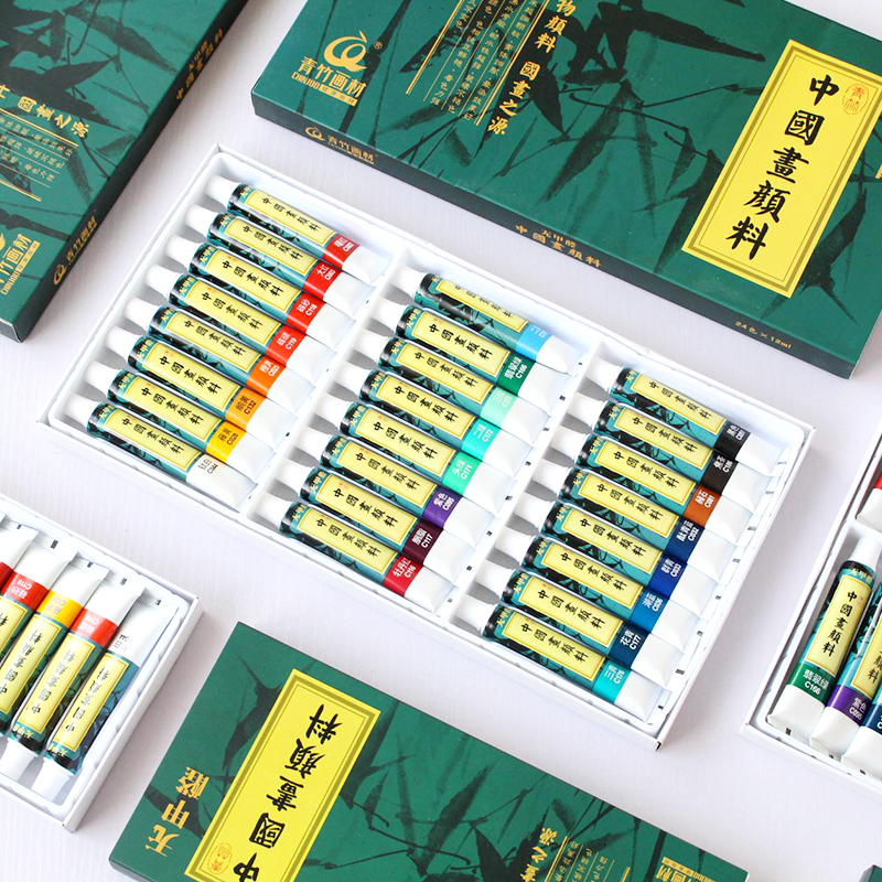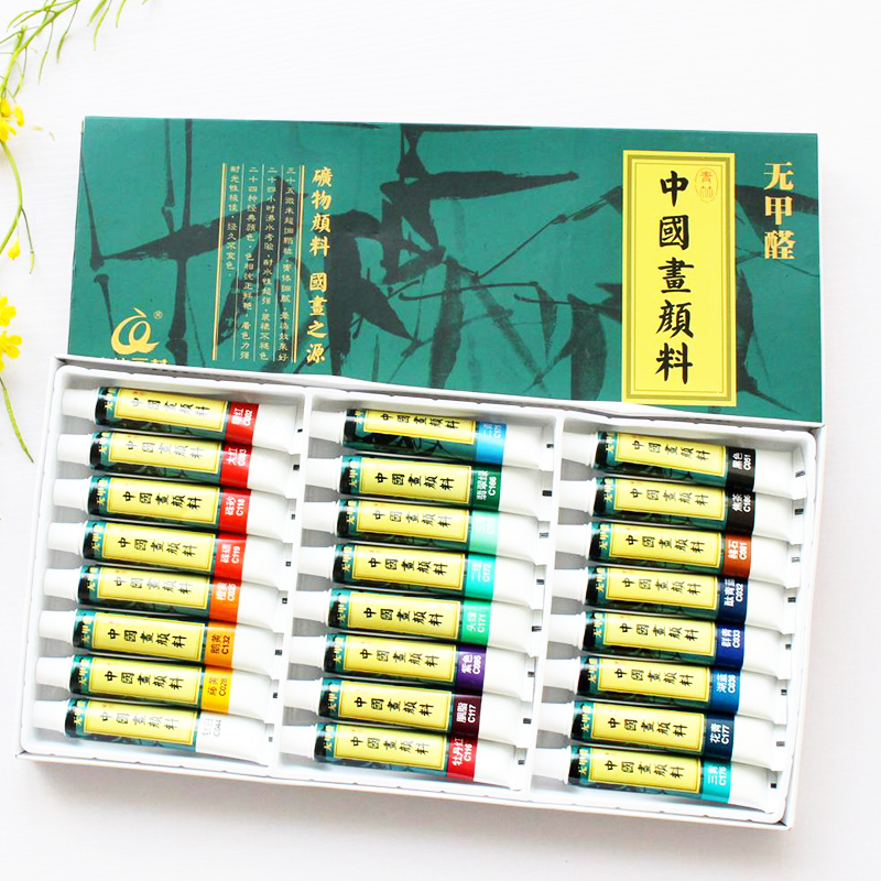 12 colors of Chinese painting, 18 colors of Chinese painting as a gift, 24 colors of Chinese painting as a gift, titanium dioxide (5 pcs), black (5 pcs) palette, garcinia cambogia (5 pcs), and three green (5 pcs) palette as a gift