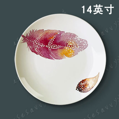 14 Inch Hand-painted Feather Decoration Pan Nordic Modern Style Living Room Dining Room Dining Room Plate Wall Hanging Pan Ceramic Pan