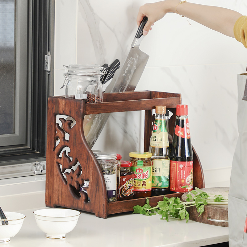 Iserie Double Layer Kitchen Shelve Table Noodle Sauce rack Multi-functional storage floor shelf floor solid wood tool holder condiment shelf