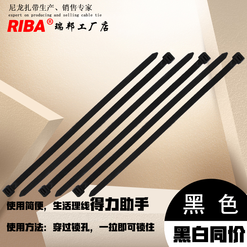 Black self-locking nylon cable tie factory standard 4 * 150 width 2 7mm storage line finishing chassis back line