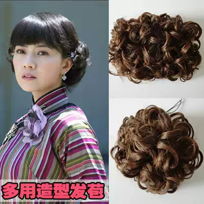 Wig bag ancient costume Hanfu modeling hair bag meatball head fluffy natural ancient style cheongsam wig modeling plate hair head flower