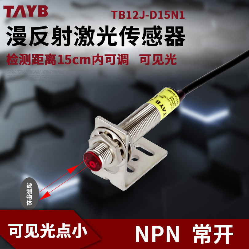 M12 laser diffuse reflection optical switch Visible light sensor Infrared sensor switch 15CM adjustable NPN