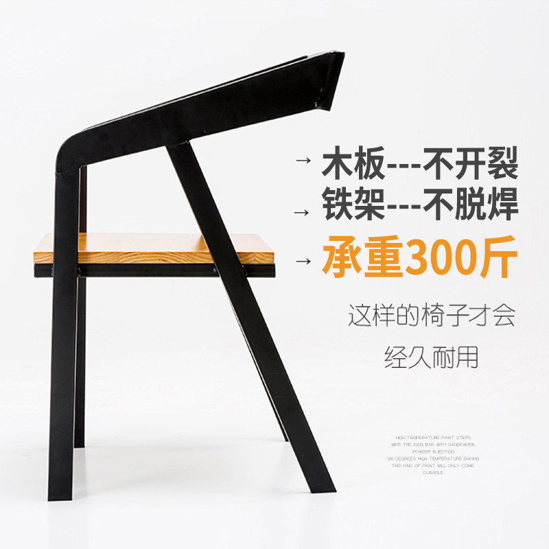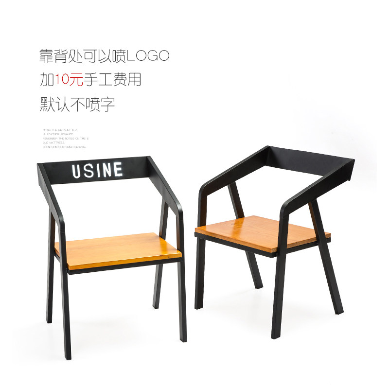 Iron Art Solid Wood Dining Chair Catering shop Café Milk Tea Shop Snack Bar can imprint logo Bar backrest chair 1119