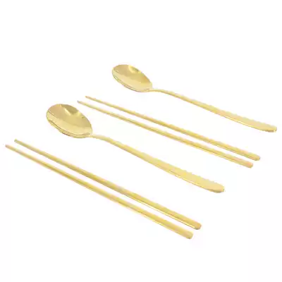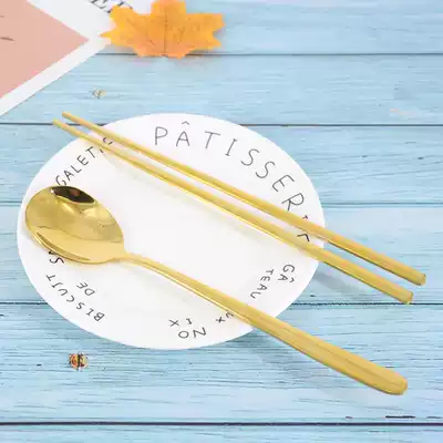 Korean stainless steel titanium alloy spoon and chopsticks set solid flat chopsticks spoon tableware Instant noodles small canteen with spoon and chopsticks