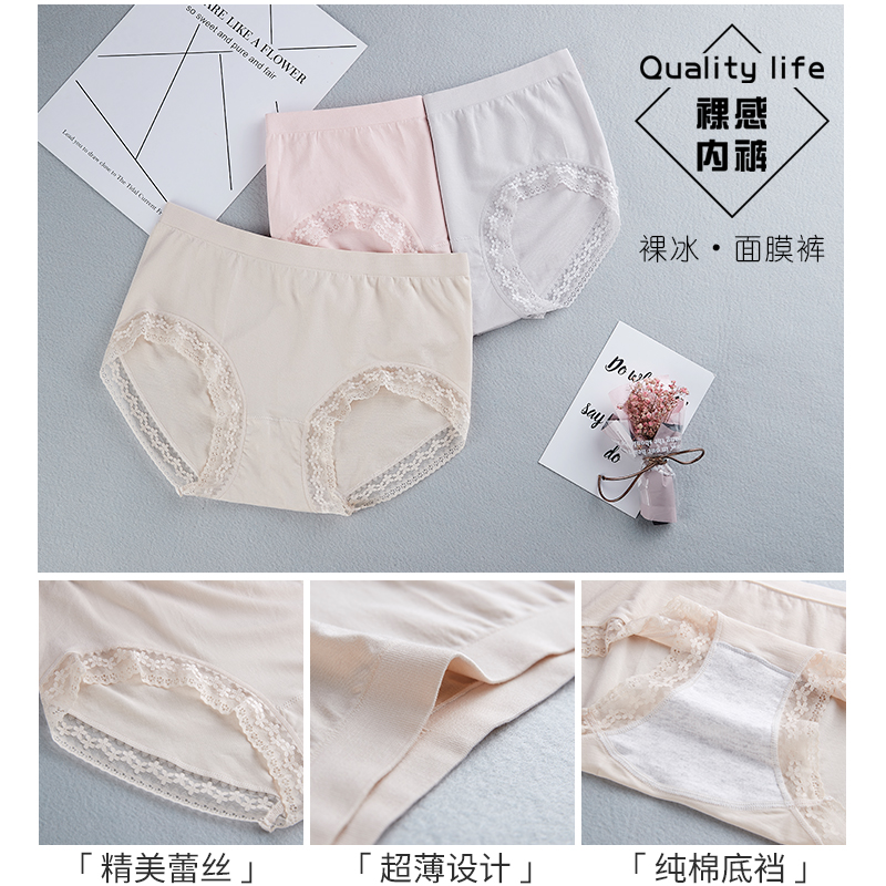 Summer ultra-thin one-piece naked ice silk mask underwear women's waist hip shaping pure cotton crotch incognito lace pants