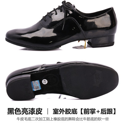 Betty dance shoes men's modern national standard dance social shoes leather square dance shoes cow straight bottom 301 outdoor rubber sole