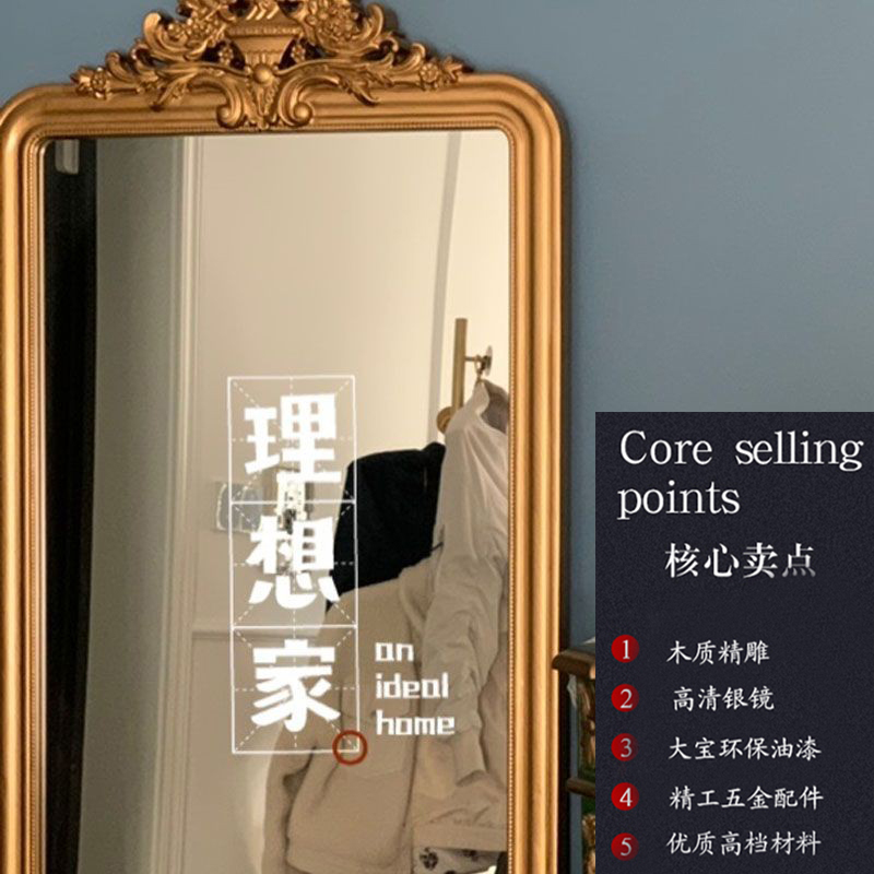 American retro full-length mirror carved family fitting French cloakroom Full-length mirror Floor-to-ceiling mirror Household ins Nordic