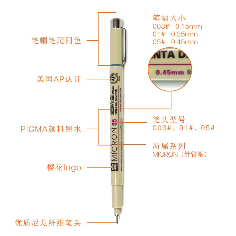 Needle pen 05 (black) Needle pen 05 (yellow) Needle pen 05 (orange) Needle pen 05 (brown) Needle pen 05 (Red) Needle pen 05 (rose red)