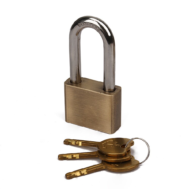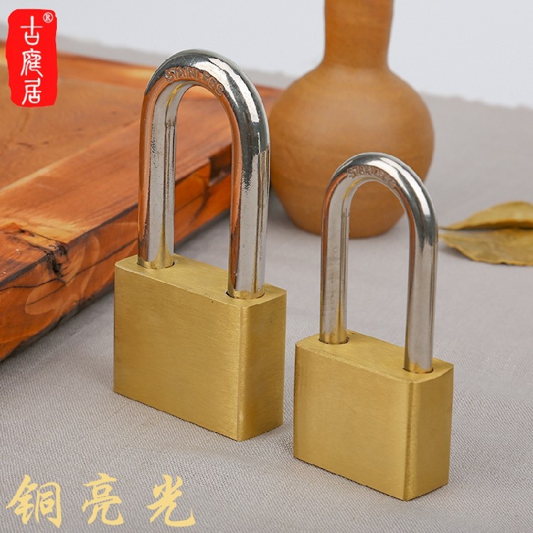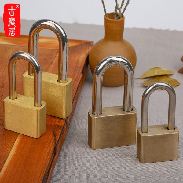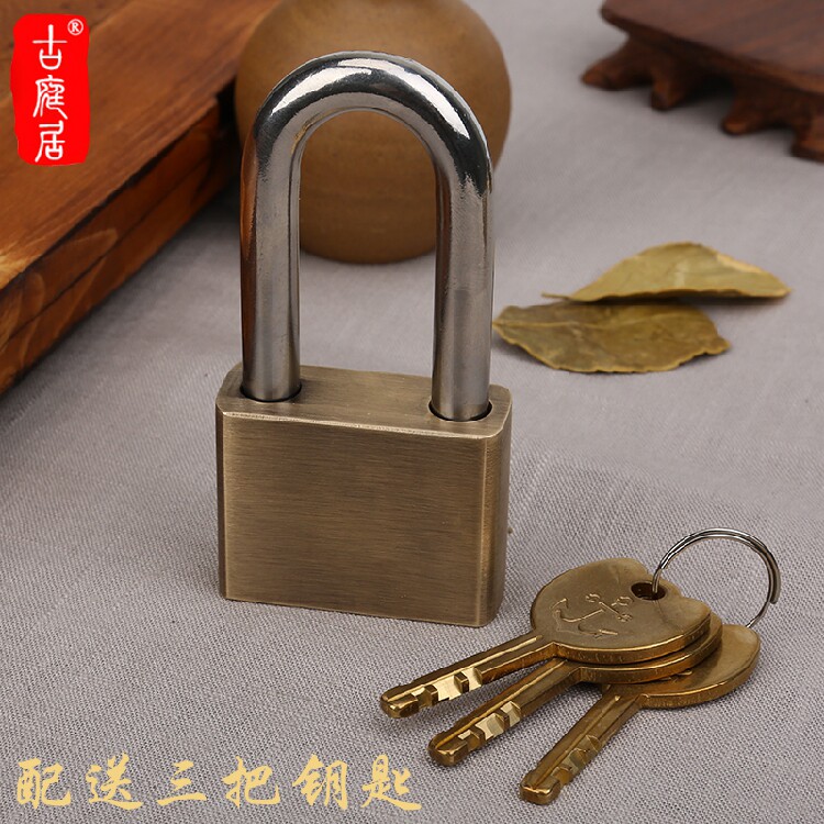 Burglar-proof antique brass lock outdoor court head lengthened long handle waterproof anti-rust anti-prying retro pure copper padlock