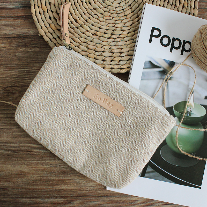 sobog original accommodation small fresh almond colour cotton linen zero wallet woman cute hands with small bag ins wind 100 lap canvas card bag
