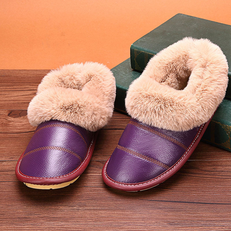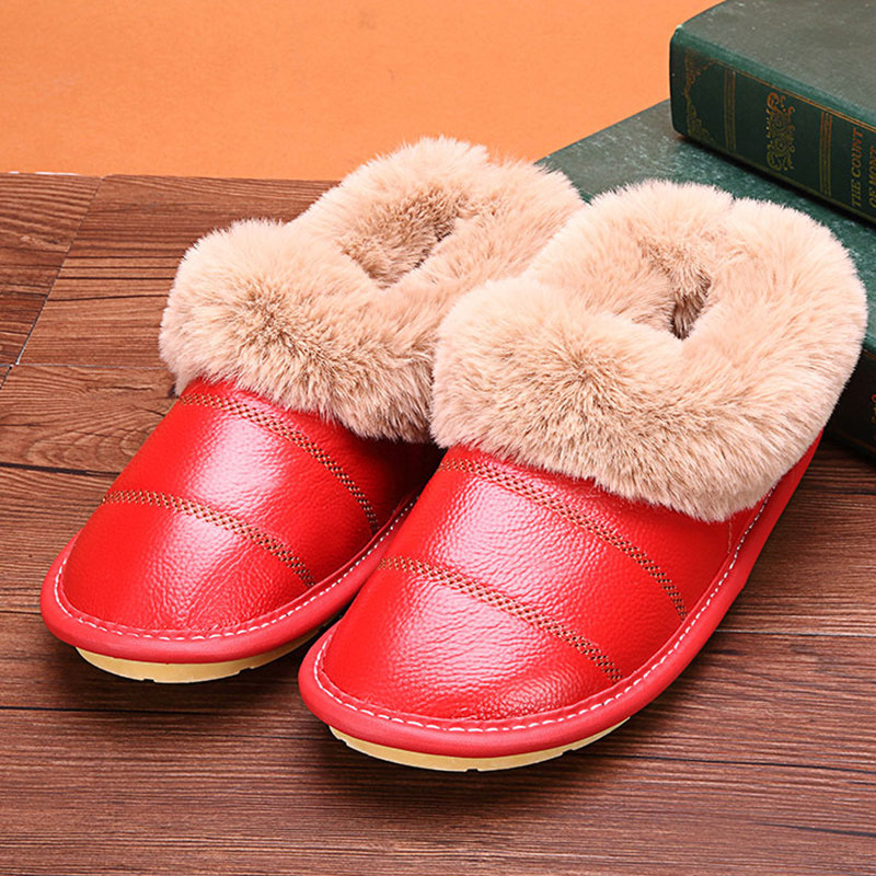 Winter Bull Leather High Cylinder Waterproof home lovers cotton slippers bag heel male and female thick sole non-slip indoor lunar cotton shoes