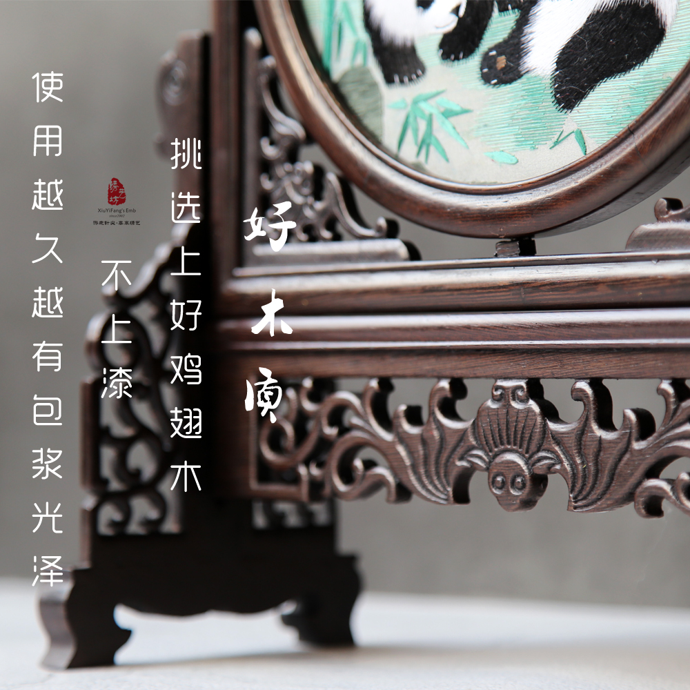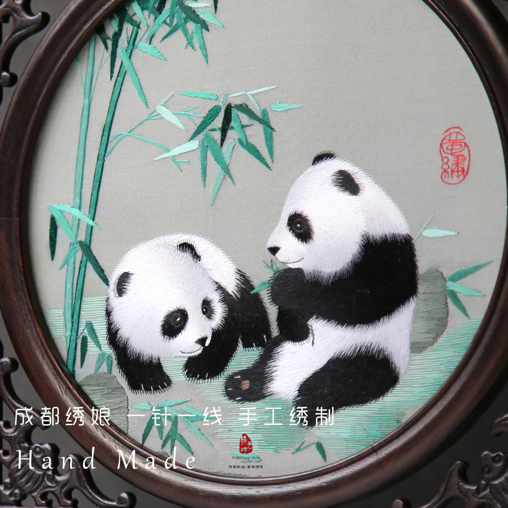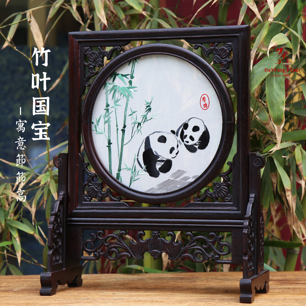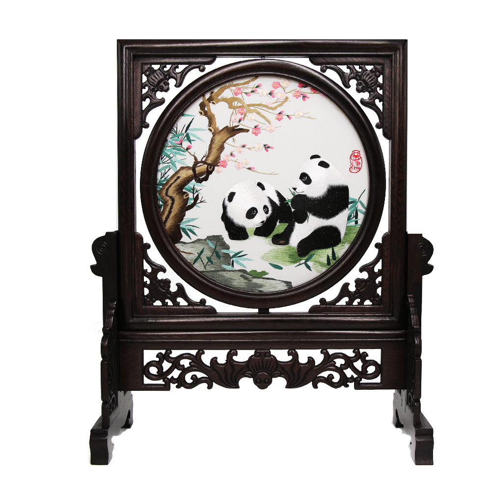 Chengdu Shu Embroidery Handmade Embroidery Bifacial Embroidered Panda Screen Handicraft Swing Accessories Business Gift China Wind Send the Old Foreign
