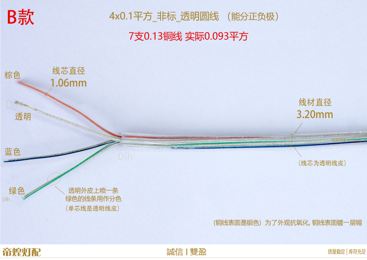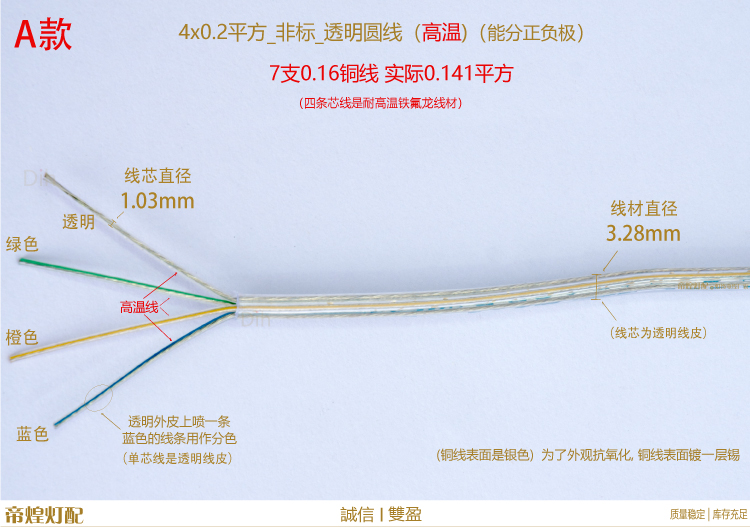 A0 2 Non-standard (four-core) (transparent) (high temperature) (transparent green orange blue)points positive and negative