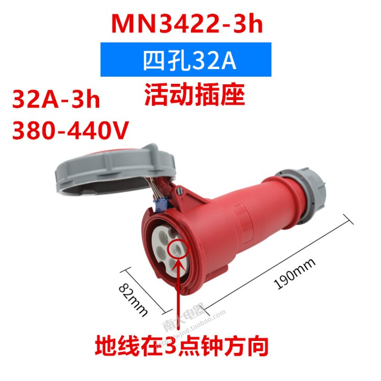 Refrigerated freezer container plug 4-core 32A-3h pier marine quad connector socket 380-440V-Taobao