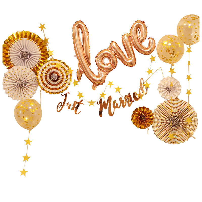 Wedding Wedding Celebration Items Golden Paper Fan Flower Folding Fan Wedding House Decoration Birthday Wedding Party Sweet Table Shop Window Arrangement