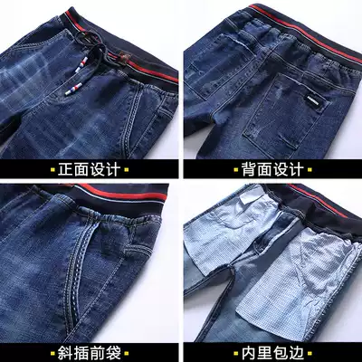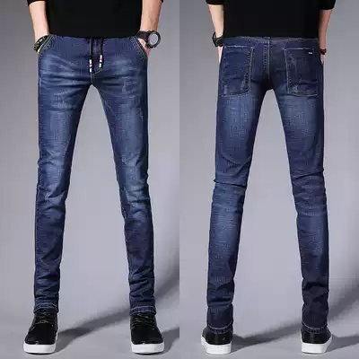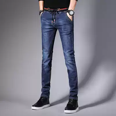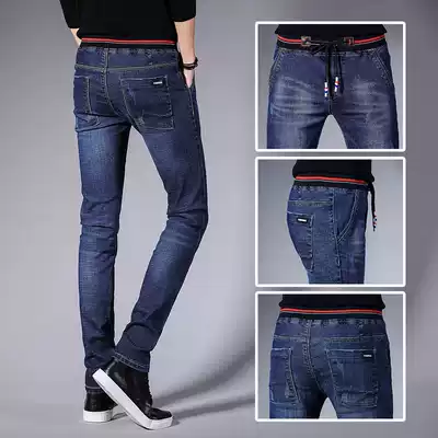 2021 New retro denim pants men's Japanese elastic waist drawstring slim wear-resistant casual autumn pipe pants