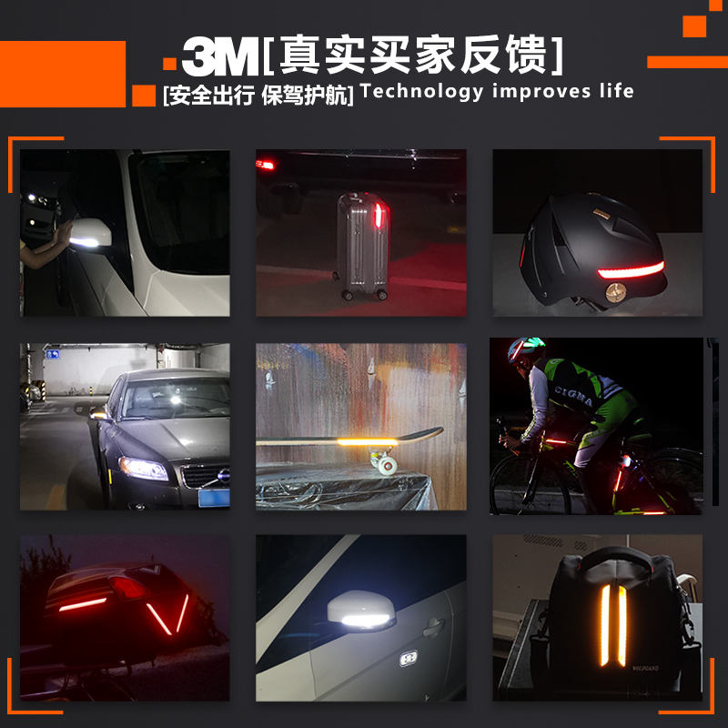 3M rear mirror reflective patch Rearview mirror reflective strip sticker Modified creative body sticker outline warning light scratch sticker