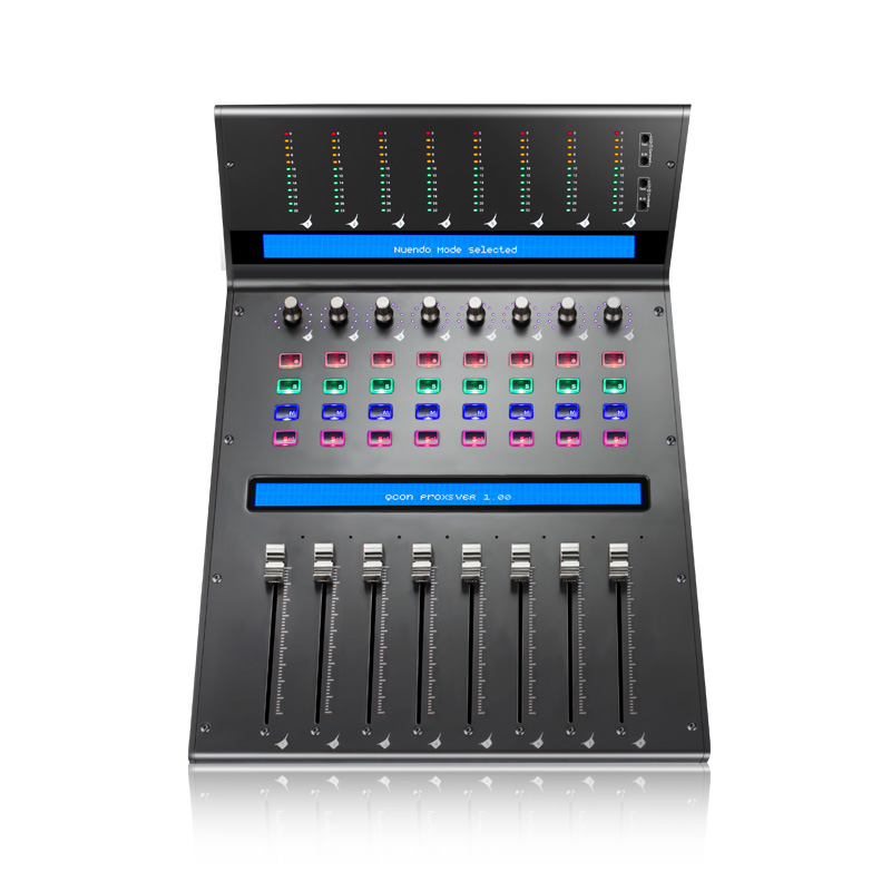 The Aiken ICON Qcon Pro XS electric pushback MIDI controller desk expands the curo mix