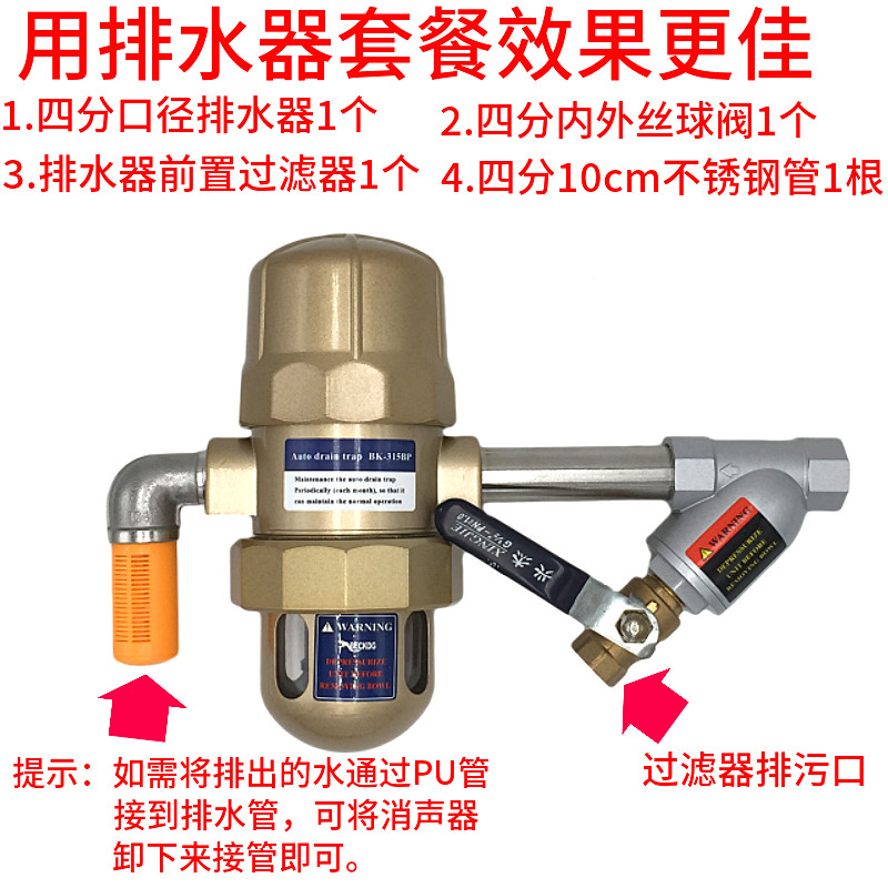 bk-315p Bakeron automatic drainer air compressor drain valve gas storage tank zero loss water discharge pa68 pneumatic