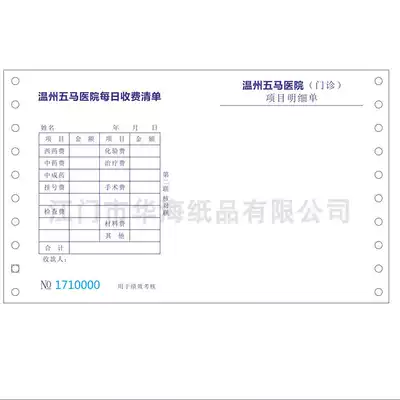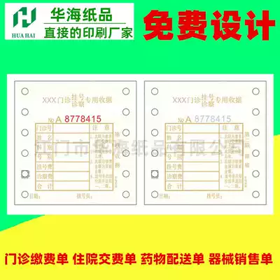Printing the second-Union hospital outpatient fee receipt Payment Voucher payment bill two-layer machine computer paper bill customization