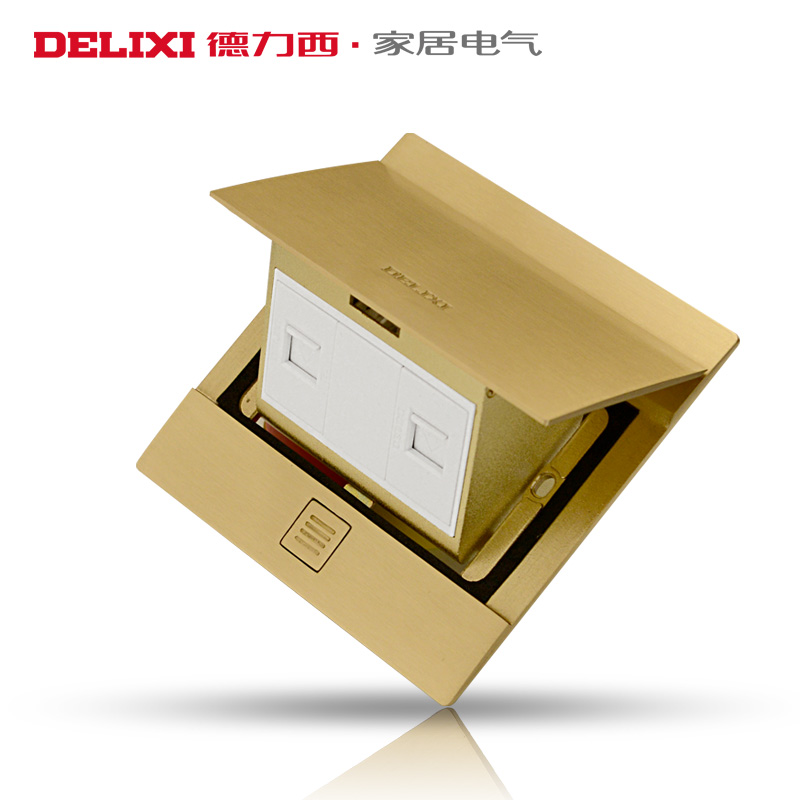 Dresy golden computer Phone ground plug waterproof hydraulic band damping internet Internet wire floor socket Champagne gold