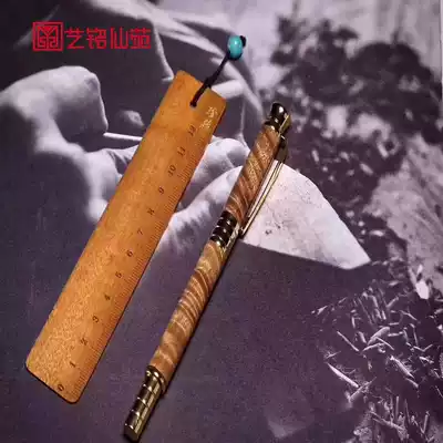 Xiaoye Zhennan pen ruler two-piece set solid wood pen set Wood new gold silk surround Nanmu signature pen