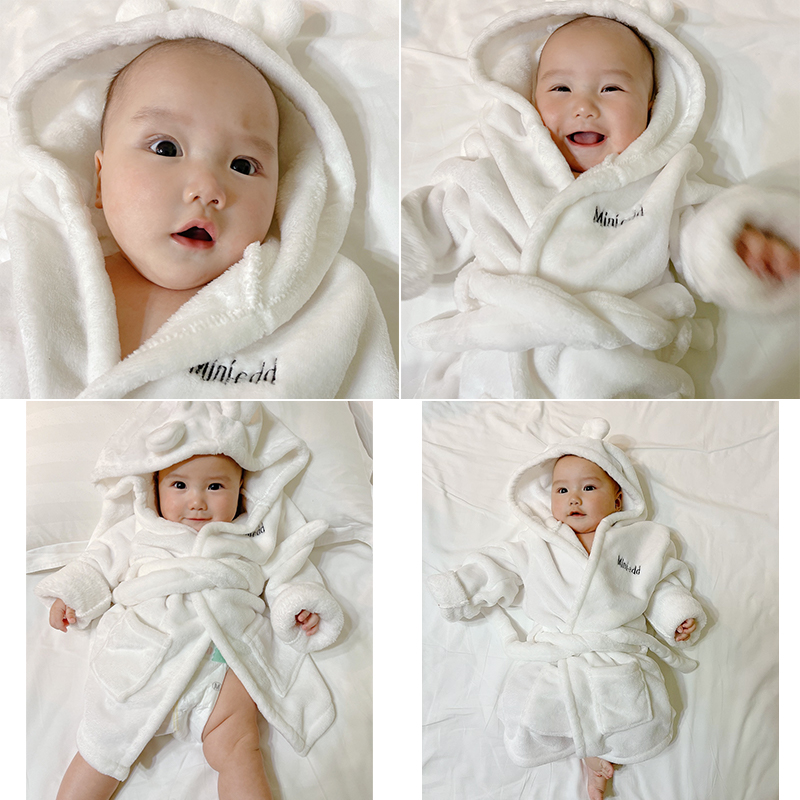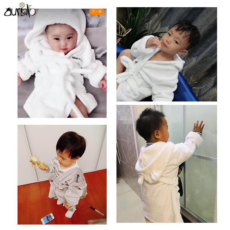 Baby bathrobe with cap Newborn bathrobe baby baby sleeping gown Child boy girl Coral Suede Cute